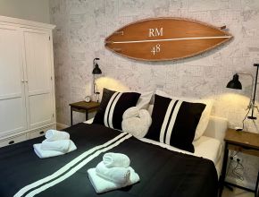 Die Zimmer Ferienwohnung (50 m²) „Apart Pier 2“ mit moderner offener Wohnküche, Schlafzimmer mit elektrisch verstellbaren Doppelbett (1,80 x 2,00 m), Duschbad/WC mit Vergrößerungsspiegel und Föhn, Fußbodenheizung in allen Räumen, großzügiger Balkon mit Gartenmöbeln und Auflagen, Safe, WLan, Flatscreen-TV im Wohn- und Schlafzimmer, Kaffeevollautomat. Waschmaschine, Trockner, Reservierter Parkplatz